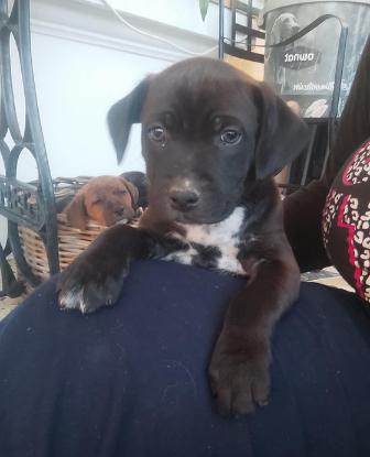 Petit mâle d’un mois et demi, x staffie/epagneul.