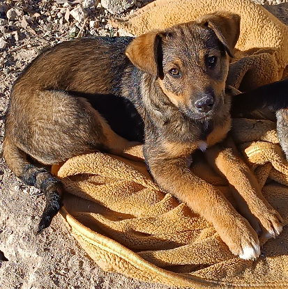 Angel est un chiot très sociable et affectueux, il s’entend bien avec tous les autres chiens, mâles et femelles. Il aime jouer et courir et il n’a pas peur des gens.