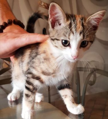 Petite femelle trouvée avec ses deux soeurs dans une maison abandonnée. Elles ont été laissées là, alors qu’elles connaissaient la vie de maison, les câlins…très très mignonnes. Impossible de les différencier tellement elles se ressemblent !