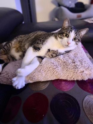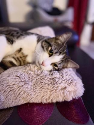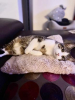 il se rapproche de plus en plus de sa famille d’accueil et n’hésites plus à faire de grosses siestes sur le canapé !