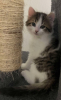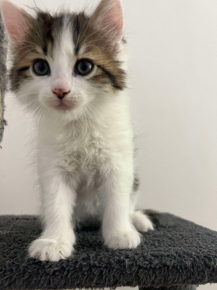 Je parais fragile étant le plus mince de ma fratrie mais je suis en réalité très fort. J’ai absolument besoin de visualiser l’environnement avant de me lancer dans quelconque aventure. En effet, je suis plutôt un suiveur qui se sentira à l’aise par mimétisme et observation. Rapidement en confiance, je prendrais plaisir à me glisser sous les meubles ou des espaces clos pour chercher… Ma foi, ce qu'il y a à trouver. Je dors toujours collé à un de mes frères et soeur, et ai besoin de contact pour me sentir bien. Il est donc important de me parler et de me câliner souvent. Je n’aime pas trop le bruit, donc le calme sonore sera de mise pour moi. j’ai hâte de rejoindre ma famille pour la vie avec un de mes frères ou soeur, ou un ami chat avec qui je pourrais évoluer.