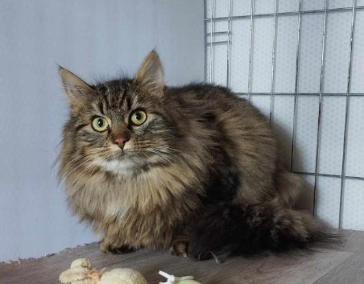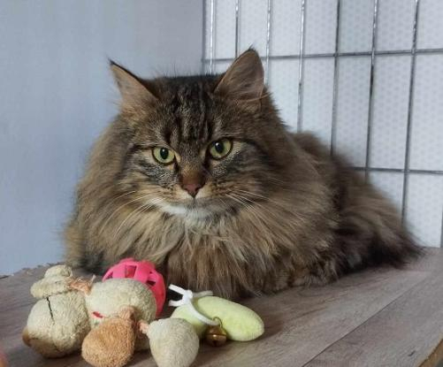 je suis brown tabby, tigrée, le pelage originel du VRAI chat européen, alors il faut me mériter, j'apprécie les caresses une fois en confiance. Je suis joueuse et apprécie mes congénères.