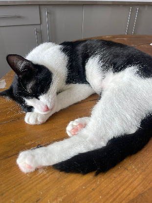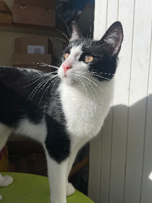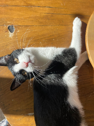 Petit moteur à ronron, si elle a du soleil et un humain sur qui se posée elle est au paradis. Elle joue avec tous ce qui bouge, un bout de papier, un bouchons et une fois ça session de chasse terminer elle revient toujours vers l’humain pour plus de câlins.