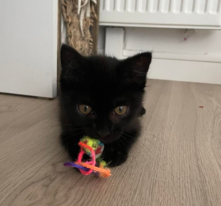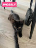 Wobbly est une petite femelle de 3 mois qui a la joie de vivre malgré son Ataxie (une maladie qui restreint sa motricité car son oreille interne est endommagée). Elle n’en à pas conscience et s’intègre très bien dans les groupes de chats. Elle est très sociable avec l’humain et aime beaucoup les câlins. Elle est également très joueuse.