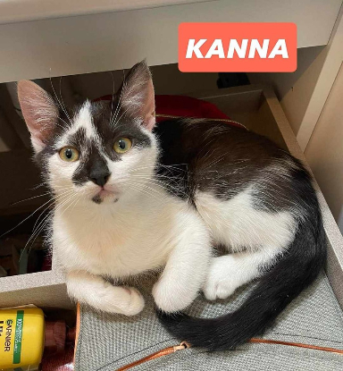 Kanna est une femelle de 3 mois qui est très attachante, proche de l’humain et en quête d’affection. Elle aime beaucoup se nicher dans des petits endroits cachés pour se reposer.