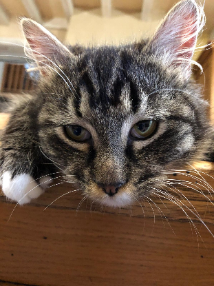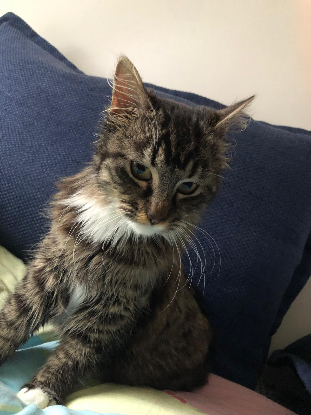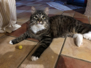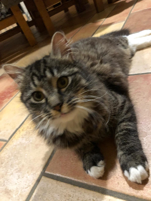 Je suis une beau mâle tigré à poil mi long, je suis plutôt calme mais je joue comme un jeune chat par moment. J’ai été habitué à cohabiter avec une quarantaine de congénères, je suis donc très sociable avec les autres chats et plutôt collant. Je suis partout le chat de ma famille d'accueil .