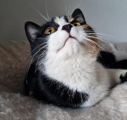 Je vous présente Vaiala, trouvée errante et affamée par des personnes bienveillantes qui l'ont recueillie le temps de faire des recherches dans le voisinage, mais personne ne s'est manifesté.
