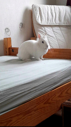 Elle est actuellement en liberté totale dans une pièce à part et aimerait pouvoir explorer plus de pièces et de lieux.