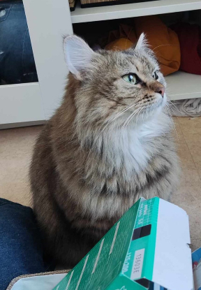 Légèrement timide au début elle peut se cacher mais dès que vous aurez le dos tourné la curiosité prendra le pas et elle partira à l'aventure chez vous. Elle accueille les câlins avec plaisir et ronronne instantanément. Elle n'hésitera pas à monter sur vos genoux et à chercher l'amour auprès de vous.
