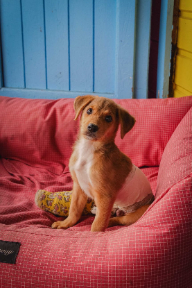 Il est aujourd'hui soigné chez sa famille d'accueil, Marie et suivi de près par son vétérinaire car il a un plâtre qui permet la réparation de son os. Encore quelques joues et Ranza pourra de nouveau être sur ses 4 pattes !