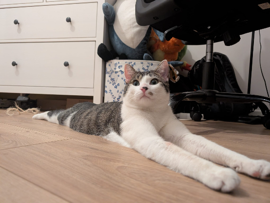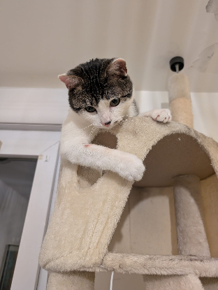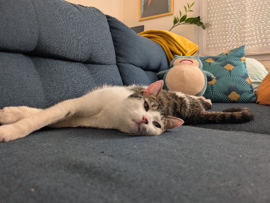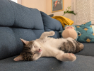 Youpi est un jeune chat énergique et joueur. Il a besoin d’être stimulé avec de grandes parties de jeux ou en jouant avec d’autres copains chats de son âge. Il est très sociable et aime qu’on le câline. C’est un grand explorateur, il est très curieux. Une fois fatigué, il se transforme en boîte à ronrons.