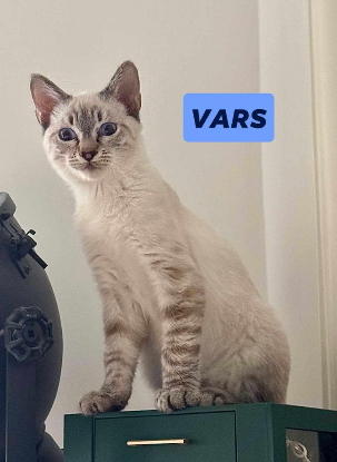 Vars est un chaton timide au début mais se révélant être un grand fan de câlins. Il ronronne dès les premières caresses et n’hésite pas à montrer qu’il adore ca en se mettant sur le dos et offrant son ventre. Une fois en confiance, il viendra passer la nuit dans un petit coin du lit et sera un compagnon prêt à recevoir beaucoup d’amour. Il est aussi curieux et très gourmand.