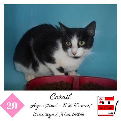 URGENCE EUTHANASIE ! Corail est une femelle de 8-10 mois sauvageonne (un comportement normal en fourrière) qui vous attend dans une fourrière du 29. ATTENTION SORTIE AU PLUS TARD LE 21/08/2020 (avant euthanasie) ! Pour adopter, c'est facile : ➡️ On se rend sur la page facebook d'Urgence Fourrière de Bretagne (UFB) -> https://www.facebook.com/sosfourrieresbreizh/ ➡️ On vient en message privé sur la page UFB ➡️ On remplit le questionnaire ➡️ Si le questionnaire est validé, on se rend disponible pour la pré-visite ➡️ On se rend aussi disponible pour venir chercher le loulou en fourrière Les chats sortent de fourrière primo-vaccinés et identifiés. Restera à charge de l’adoptant le rappel de vaccin et la stérilisation qui est OBLIGATOIRE. Les femelles en fourrière ayant été trouvées dans la rue, il y a fort à parier que nombre d'entre elles en âge de l'être soient gestantes ... ---- A PROPOS D'URGENCE FOURRIERE DE BRETAGNE (UFB) Nous sommes un COLLECTIF d'ASSOCIATIONS DE PROTECTION ANIMALE (qui rassemble notamment Moustaches et Compagnie, Bêtes de Scène, les Pachas, Chats Libres de Berné, etc, etc....) Le BUT de ce collectif d'associations est donc de SORTIR ces animaux des fourrières surchargées en les faisant ADOPTER de manière LEGALE par des familles ou en leur trouvant des FAMILLES D'ACCUEIL lorsque des places en association se libèrent.