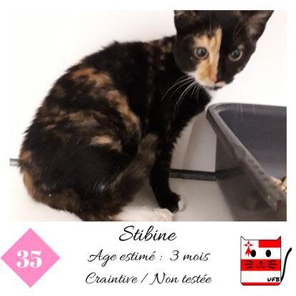 URGENCE EUTHANASIE ! Stibine est une femelle de 3 mois craintive (un comportement normal en fourrière) qui vous attend dans une fourrière du 35. ATTENTION SORTIE AU PLUS TARD LE 21/08/2020 (avant euthanasie) ! Pour adopter, c'est facile : ➡️ On se rend sur la page facebook d'Urgence Fourrière de Bretagne (UFB) -> https://www.facebook.com/sosfourrieresbreizh/ ➡️ On vient en message privé sur la page UFB ➡️ On remplit le questionnaire ➡️ Si le questionnaire est validé, on se rend disponible pour la pré-visite ➡️ On se rend aussi disponible pour venir chercher le loulou en fourrière Les chats sortent de fourrière primo-vaccinés et identifiés. Restera à charge de l’adoptant le rappel de vaccin et la stérilisation qui est OBLIGATOIRE. Les femelles en fourrière ayant été trouvées dans la rue, il y a fort à parier que nombre d'entre elles en âge de l'être soient gestantes ... ---- A PROPOS D'URGENCE FOURRIERE DE BRETAGNE (UFB) Nous sommes un COLLECTIF d'ASSOCIATIONS DE PROTECTION ANIMALE (qui rassemble notamment Moustaches et Compagnie, Bêtes de Scène, les Pachas, Chats Libres de Berné, etc, etc....) Le BUT de ce collectif d'associations est donc de SORTIR ces animaux des fourrières surchargées en les faisant ADOPTER de manière LEGALE par des familles ou en leur trouvant des FAMILLES D'ACCUEIL lorsque des places en association se libèrent.
