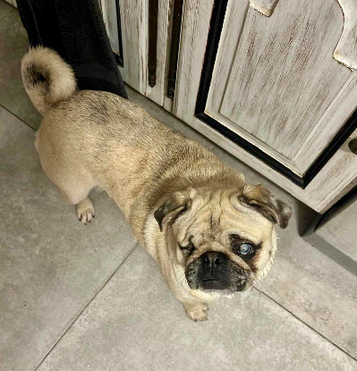 ?Bonjour les humains, je m’appelle Tess et je suis une petite carlin née en octobre 2022. J’ai la particularité d’être quasi aveugle, il ne me reste qu’un œil et je ne perçois que des formes de l’autre mais je m’en sors très bien avec mon flaire ?