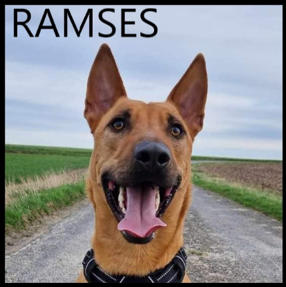 Ramsès est sociable avec les humains. Bien que craintif au premier abord, il s’adapte assez rapidement quand il se sent à l’aise. C’est un chien attachant. Gourmand et intelligent, c’est un chien très énergique qui aura besoin d’être canalisé. On évitera les enfants en bas âge.