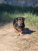 Timón est un mâle croisé Teckel né en Mars 2020 et arrivé au refuge en Mai 2024. Il pèse 10 kg et mesure xx cm au garrot. Il est en bonne santé.