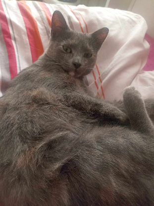 C'est une minette câline et douce. Elle est sociable congénères qu'elle accepte très facilement.