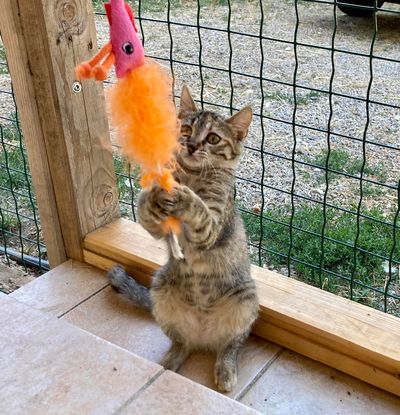 Biboo, chatonne de 4 mois, recherche sa famille pour la vie. Cette chatonne a eu de la chance. Elle a été sauvée de la rue par la détermination d'une personne qui s'est prise d'affection pour des chats errants. Elle a besoin d'une famille qui lui montrera que l'humain peut lui apporter tout l'amour dont elle a besoin et qu'elle réclame. Elle est arrivée à l'association tremblante et terrorisée. Mais dans sa famille d'accueil, elle s'est révélée très câline et joueuse. Pour le moment, elle est encore un peu timide car a vécu les 3 premiers mois de sa vie dans la rue et a besoin d'oublier son passé. Mais dès qu'elle est caressée, elle ronronne et vient redemander des caresses. Biboo est identifiée, vaccinée TC (primo-vaccination et rappel), testée FIV FeLV négatif et déparasitée (interne / externe). Elle est adoptable sous contrat contre remboursement des frais vétérinaires : 160€. Sa stérilisation est à la charge de son adoptant(e) et devra être faite avant ses 6 mois. Vous pouvez la rencontrer sur RDV à Vaugneray Si vous êtes intéressé·e pour l'adopter, merci de répondre au questionnaire d'adoption : associationliberty.fr/adoptions/questionnaire_chat-te-s/