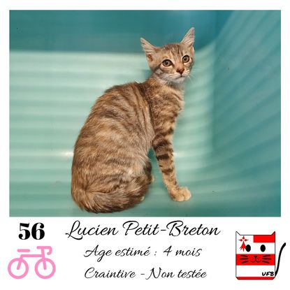URGENCE EUTHANASIE ! Lucien Petit-Breton est un mâle de 4 mois craintif (un comportement normal en fourrière) qui vous attend dans une fourrière du 56. ATTENTION SORTIE AU PLUS TARD LE 28/08/2020 (avant euthanasie) ! Pour adopter, c'est facile : ➡️ On se rend sur la page facebook d'Urgence Fourrière de Bretagne (UFB) -> https://www.facebook.com/sosfourrieresbreizh/ ➡️ On vient en message privé sur la page UFB ➡️ On remplit le questionnaire ➡️ Si le questionnaire est validé, on se rend disponible pour la pré-visite ➡️ On se rend aussi disponible pour venir chercher le loulou en fourrière Les chats sortent de fourrière primo-vaccinés et identifiés. Restera à charge de l’adoptant le rappel de vaccin et la stérilisation qui est OBLIGATOIRE. Les femelles en fourrière ayant été trouvées dans la rue, il y a fort à parier que nombre d'entre elles en âge de l'être soient gestantes ... ---- A PROPOS D'URGENCE FOURRIERE DE BRETAGNE (UFB) Nous sommes un COLLECTIF d'ASSOCIATIONS DE PROTECTION ANIMALE (qui rassemble notamment Moustaches et Compagnie, Bêtes de Scène, les Pachas, Chats Libres de Berné, etc, etc....) Le BUT de ce collectif d'associations est donc de SORTIR ces animaux des fourrières surchargées en les faisant ADOPTER de manière LEGALE par des familles ou en leur trouvant des FAMILLES D'ACCUEIL lorsque des places en association se libèrent.