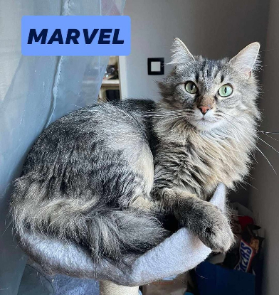 Marvel recherche un foyer calme, sans jeunes enfants ni autres animaux, et avec des humains prêts à lui consacrer du temps chaque jour pour l’entretien de son royal pelage