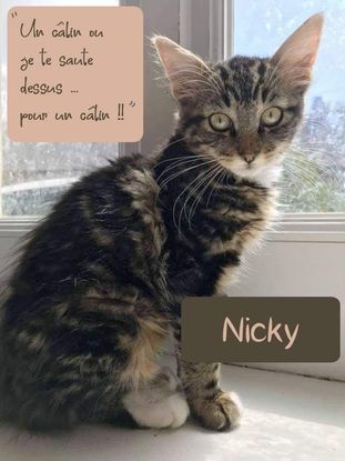Hello, moi c'est Nicky. Tout comme mon frère de "galère" Smoke, je suis une grande fan de câlins ! Oui le "galère" c'est parce qu'on n'est pas des vrais frères et sœurs, on a été trouvés sur la même commune mais pas au même endroit. Mais comme les Associations manquent cruellement de Familles d'Accueil, nous avons été mis ensemble après notre quarantaine, bah oui nos sauveteurs ont quand même fait les choses bien ! Je suis la seule fille de ma fratrie, mes vrais frères sont Poppy, Sany et Soyouz, qui vous serons présentés prochainement. Toi qui me lis, viens me rencontrer à La Dominelais dans le 35, je te ferai plein de câlins ! Formulaire de Pré Adoption : https://docs.google.com/forms/d/e/1FAIpQLSeO_7R3eIOTNdox-jdtJHhUttJ9VH_I3yX7LM086y9NS6fYtw/viewform?usp=sf_link