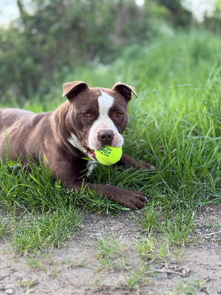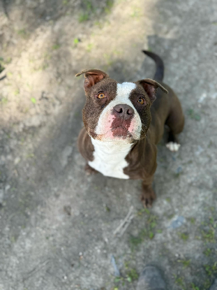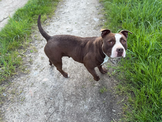 Coucou, je m'appelle Pâquerette et je suis une petite bully pocket d'environ 2 ans ❤