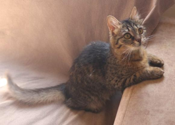 En novembre 2024, notre bénévole sur place fait sa tournée quotidienne de croquettes pour donner à manger aux très nombreux animaux abandonnés dans la rue. Elle trouve Gaia, encore chaton, avec une importante plaie au visage. Elle est seule, sans sa mère. Un bombardement s'étant produit quelques heures plus tôt, notre bénévole a patienté pour voir si la maman revenait et l'a cherché dans les décombres.