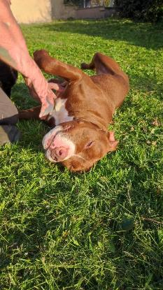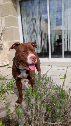Mes accueillants ce savent pas trop définir ma race, mais moi je sais que je suis un gros chien de 2 ans (type X Dogue).