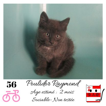 URGENCE EUTHANASIE ! Raymond Poulidor est une femelle de 2 mois sociable qui vous attend dans une fourrière du 56. ATTENTION SORTIE AU PLUS TARD LE 28/08/2020 (avant euthanasie) ! Pour adopter, c'est facile : ➡️ On se rend sur la page facebook d'Urgence Fourrière de Bretagne (UFB) -> https://www.facebook.com/sosfourrieresbreizh/ ➡️ On vient en message privé sur la page UFB ➡️ On remplit le questionnaire ➡️ Si le questionnaire est validé, on se rend disponible pour la pré-visite ➡️ On se rend aussi disponible pour venir chercher le loulou en fourrière Les chats sortent de fourrière primo-vaccinés et identifiés. Restera à charge de l’adoptant le rappel de vaccin et la stérilisation qui est OBLIGATOIRE. Les femelles en fourrière ayant été trouvées dans la rue, il y a fort à parier que nombre d'entre elles en âge de l'être soient gestantes ... ---- A PROPOS D'URGENCE FOURRIERE DE BRETAGNE (UFB) Nous sommes un COLLECTIF d'ASSOCIATIONS DE PROTECTION ANIMALE (qui rassemble notamment Moustaches et Compagnie, Bêtes de Scène, les Pachas, Chats Libres de Berné, etc, etc....) Le BUT de ce collectif d'associations est donc de SORTIR ces animaux des fourrières surchargées en les faisant ADOPTER de manière LEGALE par des familles ou en leur trouvant des FAMILLES D'ACCUEIL lorsque des places en association se libèrent.