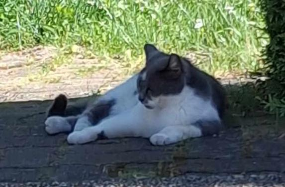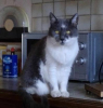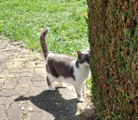 Chat femelle, type Européen, coloris grise et blanche. Age : 12 ans