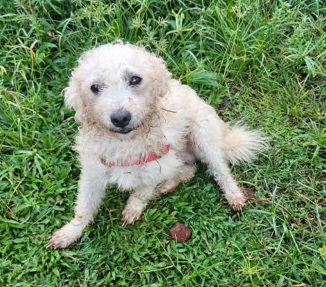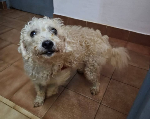 Elle est âgée d'environ 10 mois et pèse 7 kilos. Elle est croisée bichon frisé.