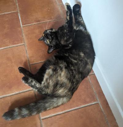 J'ai 9 mois et je suis en parfaite santé ! Je suis encore jeune dans ma tête donc j'aime jouer et je suis dynamique! J'apprécie jouer avec mes humains, et plus généralement j'aime être proche d'eux. Je suis sociable et câline. J'aime m'installer près des humains pour recevoir pleins de petites gratouilles (et j'adore qu'on me gratouille le ventre!).