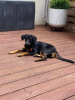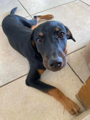 Elle est agée de 6 mois et pèse 8 kilos ( gabarit petit-moyen à taille adulte)