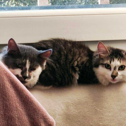 Ils sont estimés au 15/06/24 et 15/05/24 sont stérilisés. Ils partiront dans leurs familles identifiés et vaccinés tcl. Sweety et Titi ont été testés négatif felv et fiv. ?Ils sont visibles sur Bréal (35)