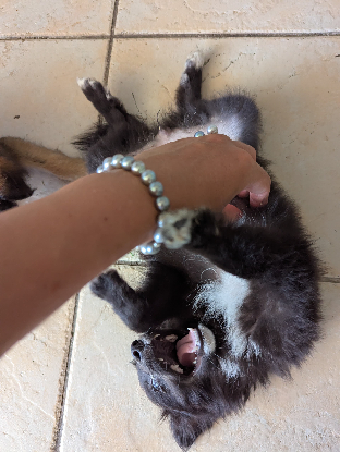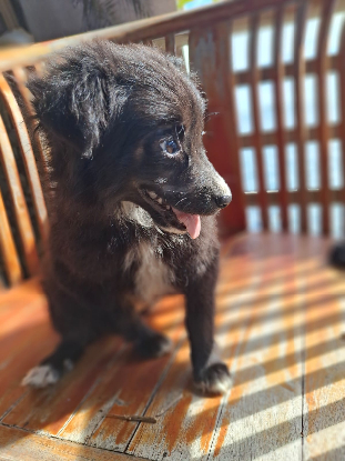Tiva est une petite chienne issue d’une portée sauvage, une situation malheureusement fréquente en Polynésie. Elle a failli connaître une fin tragique : une bénévole a surpris une personne s’apprêtant à jeter Tiva et sa sœur, enfermées dans un sac plastique, dans une rivière.