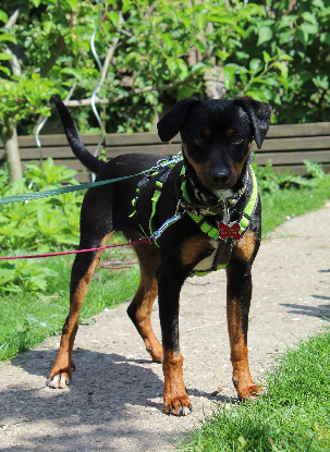 "Guille est un petit chien adorable et très attachant. Il est affectueux, attentif et a encore un comportement de chiot par moment! Il est hyper sociable avec tout le monde: humains, chiens, chats, poules, ce sont tous des copains pour lui. Il est très fier de se promener en laisse et n'a peur de rien. Face à une situation qu'il ne connaît pas, il s'arrête et observe puis il suffit de lui dire d'avancer pour qu'il reparte tout joyeux! A l'intérieur il est sage et propre.