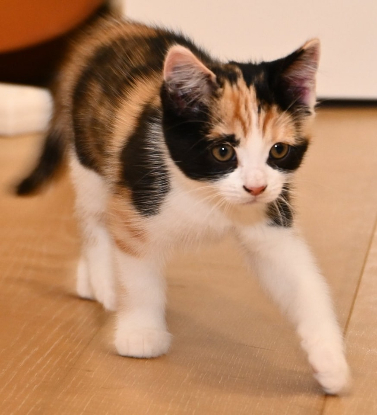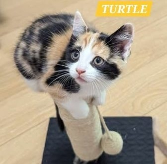 Avec son pelage noir, roux et blanc, Turtle est une petite merveille.