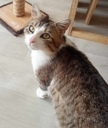 Je suis un peu brute quand je joue, j'adore les câlins, je suis ok chiens, mes congénères ne me dérange pas, ma nounou a deux chiens moyens calme et trois chattes stérilisées d'après elle il me faudrait plutôt une maison avec un jardin.