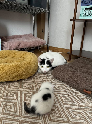 Arrivée gestante d’un sauvetage de l’association Simba regroupant 40 chats, elle a eu depuis un chaton, Kyuta.