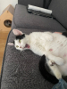 C’est une chatte très touchante : elle est néanmoins timide, elle ne veut pas déranger, il faut prendre les devants, la rassurer et l’encourager, en quelques jours elle deviendra une vraie boule à ronrons !