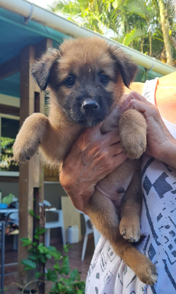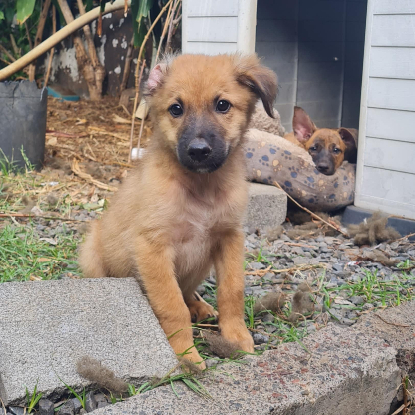 Une proposition d'accueil pour 3 chiots ayant été trouvée, c'est ainsi que nous avons pu prendre en charge WAFFLE ainsi que ses soeurs : LARA & HIBA.
