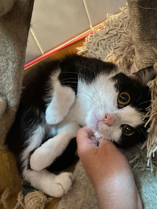 Je suis une jeune minette qui a vécu avec 39 autres chats. Autant dire que je n’ai pas eu le bonheur de commencer ma vie dans un cocon aimant. L’humain, je l’apprends tout doucement… et avec le temps, j’ai découvert que la caresse pouvait être agréable.