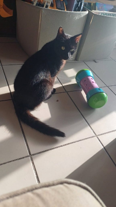 Milo est une belle panthère noire aux yeux jaunes. Agé d’environ 9 mois, Milo est un tout jeune adulte débordant d’énergie et de vie. Au quotidien ses activités favorites sont le jeux, la sieste, un peu la gourmandise, et à nouveau le jeu. C’est un chat pot de colle, qui adore être proche de ses humains toute la journée. Milo est solaire, c’est un petit bonbon de vie formidable. Impossible de ne pas l’aimer ce beau loulou !