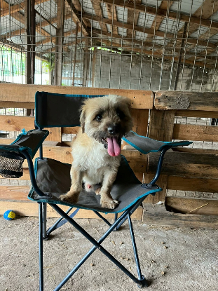 Buzz est un chien très sociable envers les humains, très énergique et gourmand. Il apprécie avoir de la visite dans son box. Il accepte d'être prit dans les bras mais il bouge beaucoup. Il est très excité par cette nouvelle vie enfermée. Il a vraiment besoin de sortir pour pouvoir courir, jouer, se dépenser à plaisir.