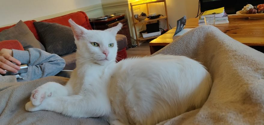 Née le 1er janvier 2018, Elle est calme et câline, s'entend en principe avec les chiens et peut vivre en appartement. Hermine est exclusive et doit être le seul chat de la maison