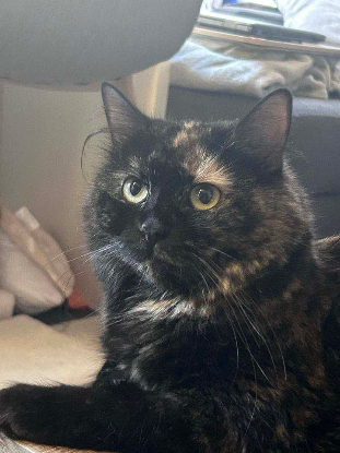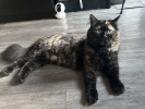 Douce beauté magnifique chatte à poils mi-longs, au pelage écaille de tortue, aussi élégante que discrète. Très sensible, elle s’épanouira pleinement dans un environnement paisible, sans enfants, auprès d’une personne patiente et douce.