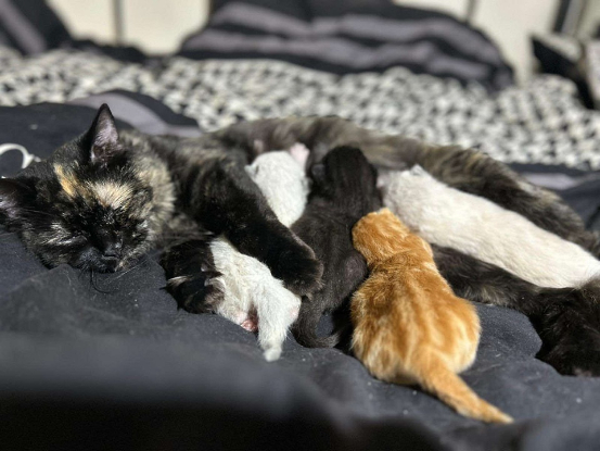 HOURI, et ses chatons : VICO, CHIPS, DORITOS, CHIPSTER