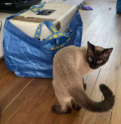 On ne choisit pas toujours son prénom, mais Malm, lui, l’a mérité : à peine récupéré, il a foncé droit dans un sac IKEA. Clairement un chat avec du goût (et du flair pour les rangements suédois) !