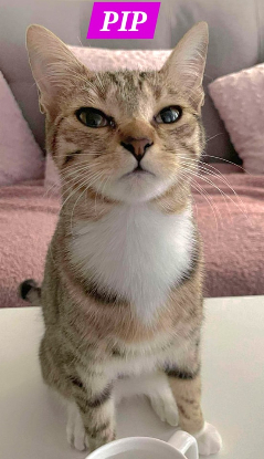 Pip est une adorable petite chatte très attachante. En demande d'affection et de câlins, elle peut rester des heures couchée sur les genoux à ronronner. Elle est également joueuse mais jamais dans l'excès : elle ne mord pas et ne sort pas les griffes.